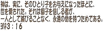 "For så har Gud elsket verden at han gav sin Sønn, den enbårne, forat hver den som tror på ham, ikke skal fortapes, men ha evig liv;