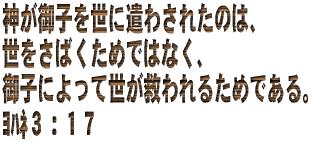 Denn Gott hat seinen Sohn nicht in die Welt gesandt, daß er die Welt richte, sondern daß die Welt durch ihn errettet werde." Johann 3:16, 17